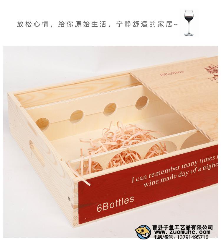 版權(quán)說明:如非注明,本站文章均為曹縣子魚工藝品有限公司原創(chuàng),轉(zhuǎn)載請(qǐng)注明出處和附帶定制 高端紅酒箱六支裝酒盒木盒通用木箱葡萄酒箱包裝盒6紅酒包裝禮盒本文鏈接。